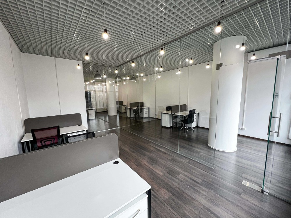 Вартість: 1800$ / міс (у вартість оренди офісу входить користування загальними зонами, а саме: ресепшн, принт зона, кухня, кімната для переговорів, з/в, коридори).