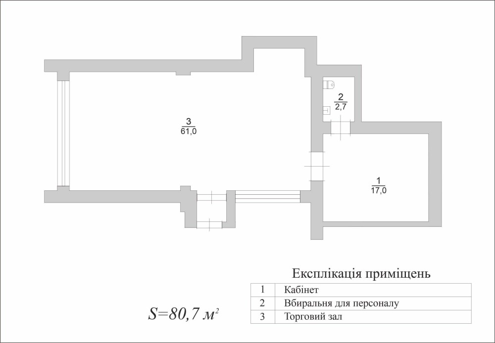 Оренда приміщення під магазин/салон/офіс площею від 80,7 кв.м.