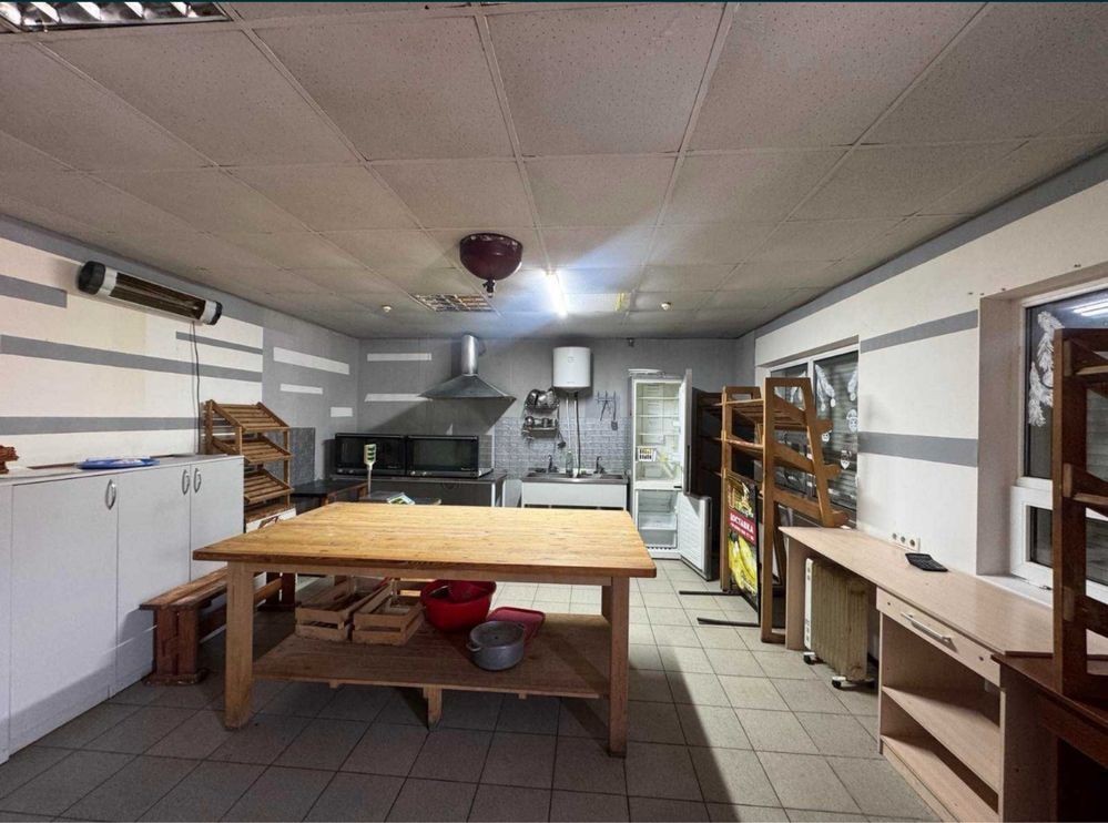 Приміщення повністю облаштоване всім необхідним для виробництва: професійне обладнання, піч, холодильники, робочі столи, витяжка та інше. Є всі комунікації, зручне розташування та комфортні умови для роботи.