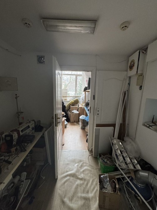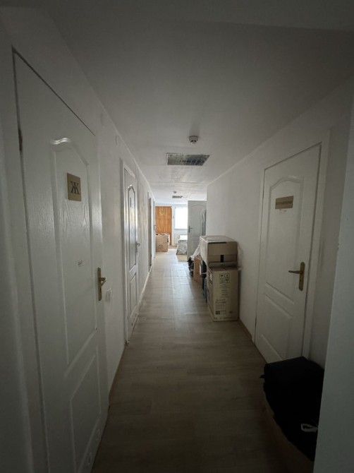 Складається з 4-ох кабінетів по 17м2, є одне велике приміщення 100м2 і висотою під 5 м, трьох санвузлів і 4-ох малих приміщень вільного призначення.