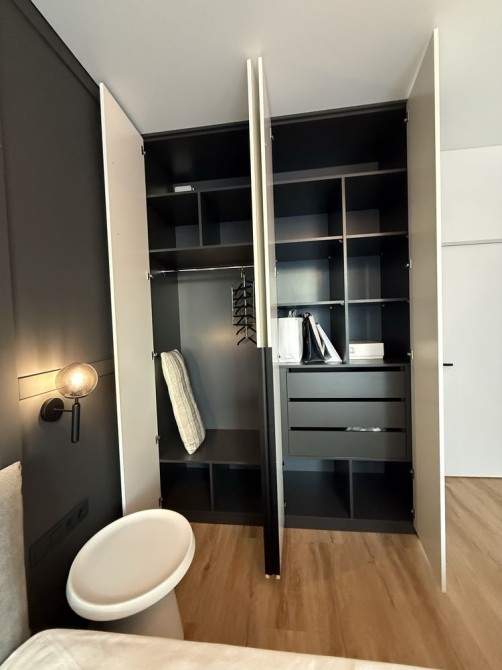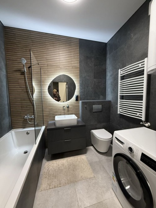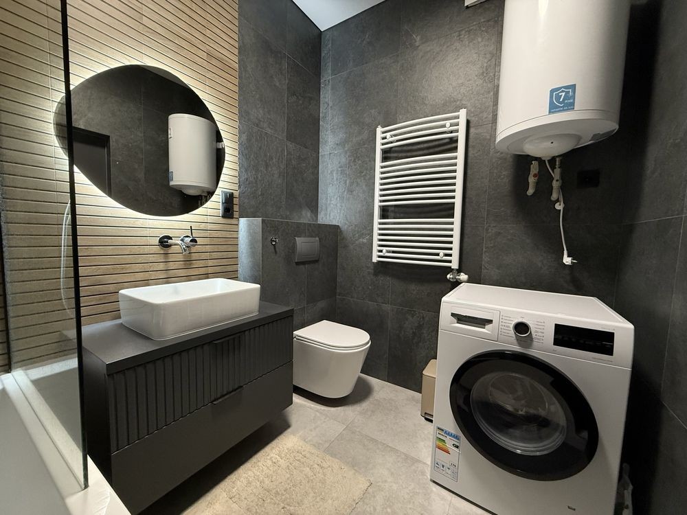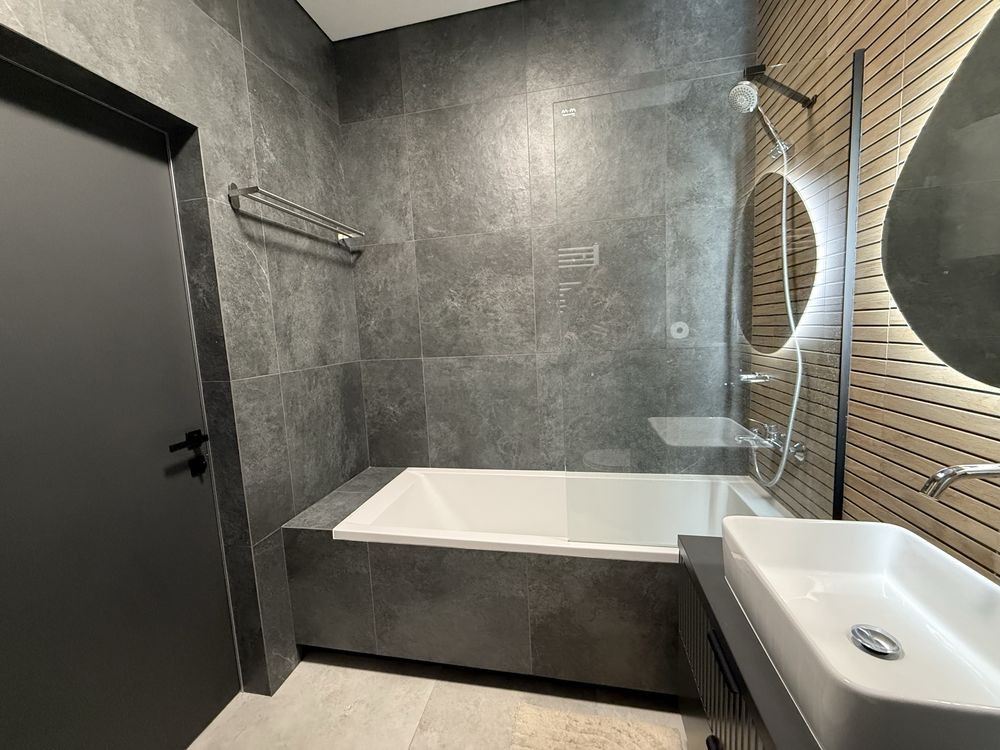 - виконана в преміум матеріалах (італійська та іспанська плитка, декоративна шпаклівка, всі меблі на замовлення, ортопедичний матрас), дуже зручна та комфортна для життя.