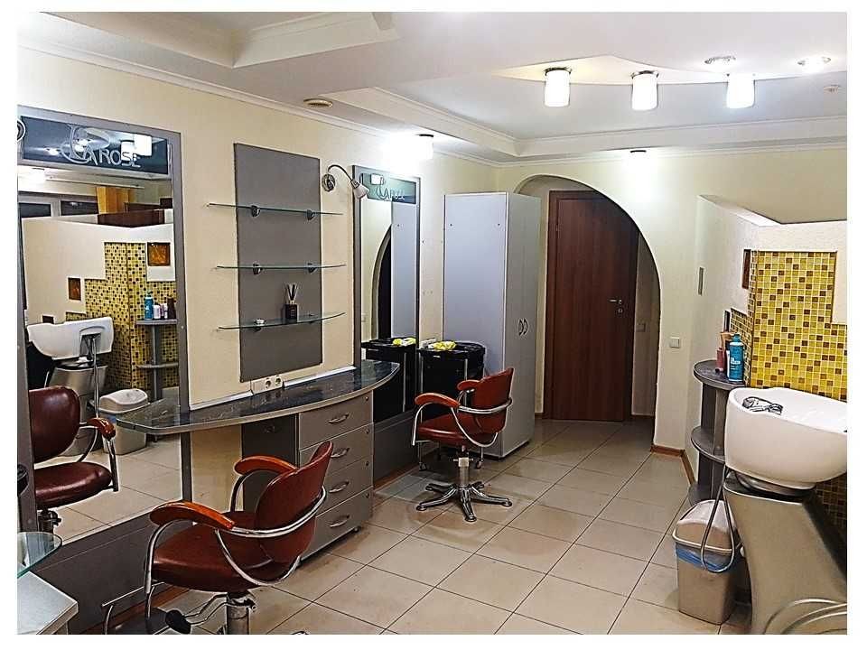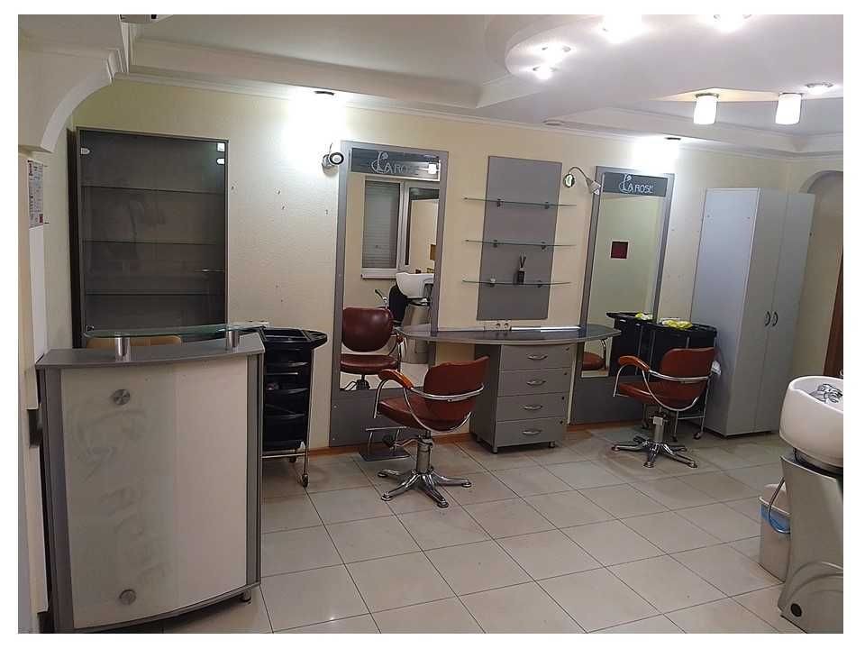 Салон повністю обладнаний: 2 місця перукарів, кімната педікюру, масажна кімната, манікюрний стіл, мийка перукарська, крісла, меблі, підсобні приміщення.