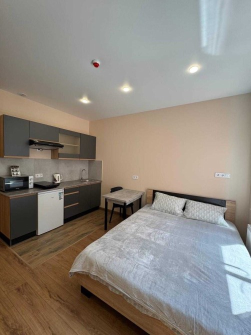 У квартирі є все для комфортного проживання ( спальня, зона кухні, суміжний санвузол з душовою та велика шафа в коридорі).