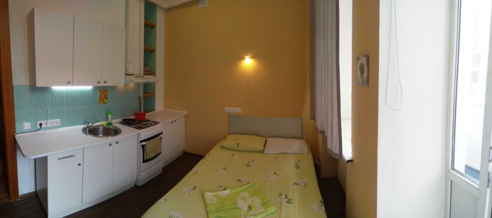 Оренда довгостроково, 1-к смарт-студія у центрі Києва, вул. Січових Стрільців, 10 на Львівській площі. 10 хвилин пішки до метро Золоті ворота, не далеко Обласна лікарня на вул. Баггавутівська. Укомплектована необхідними меблями та технікою, Інтернет. Спальных місць - 2