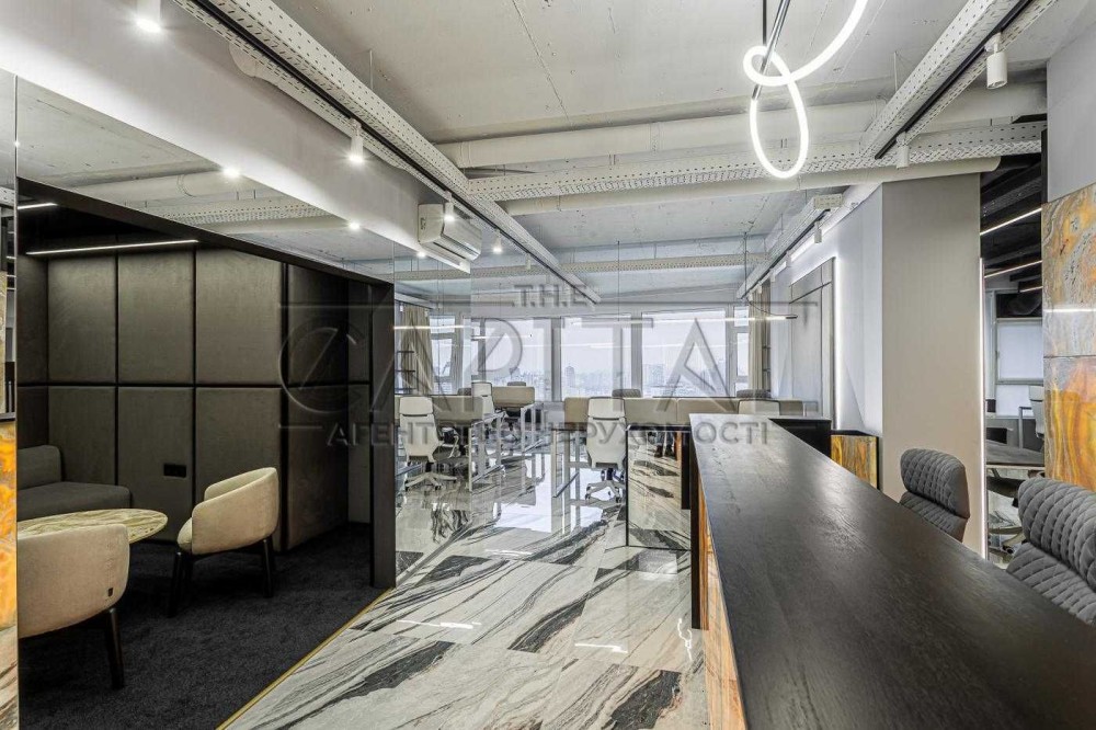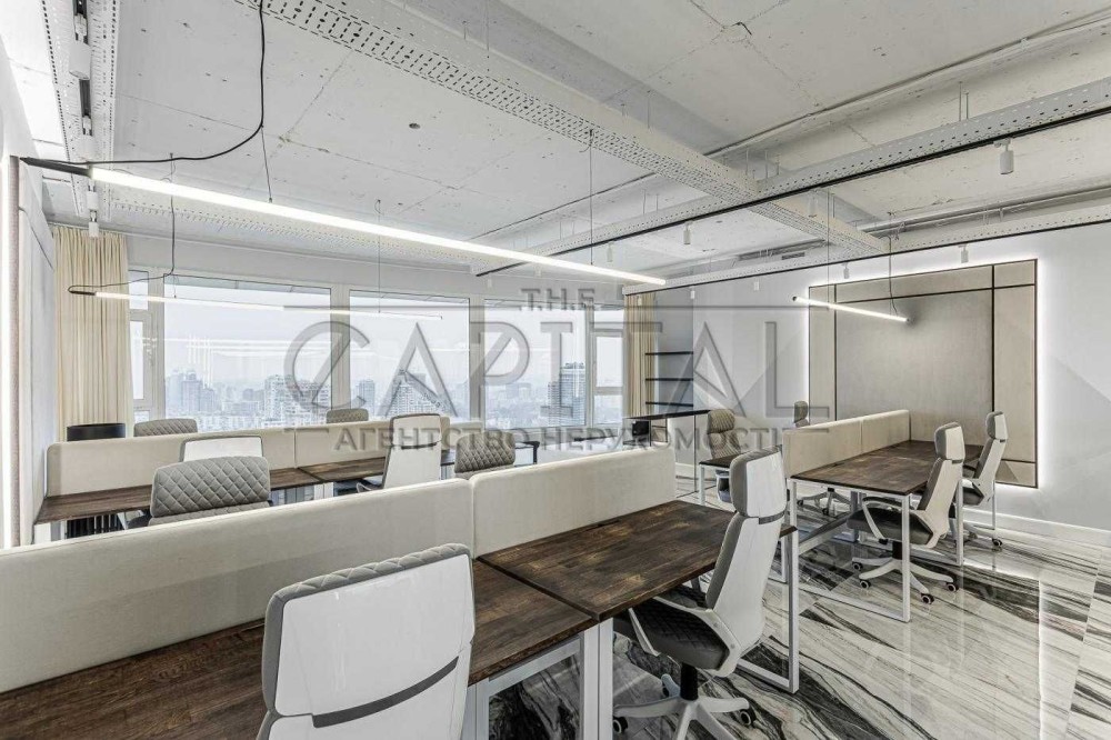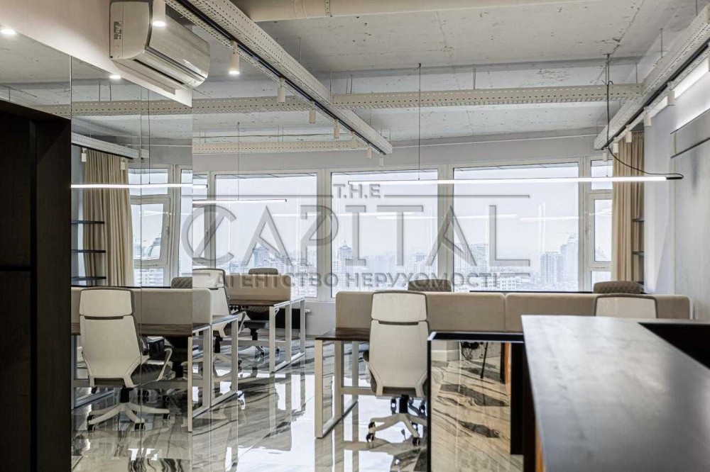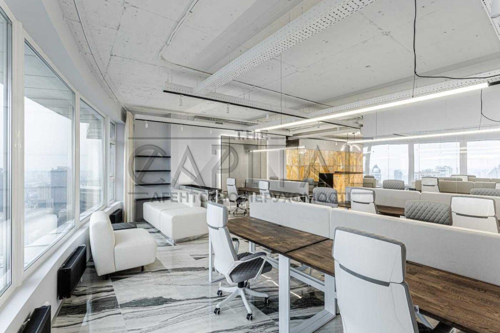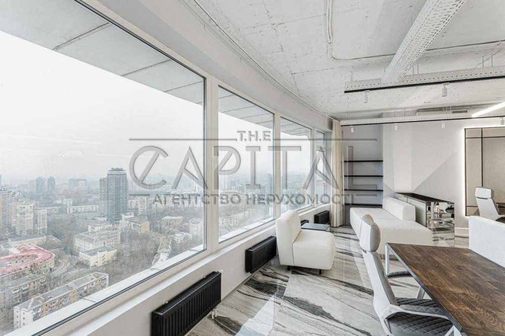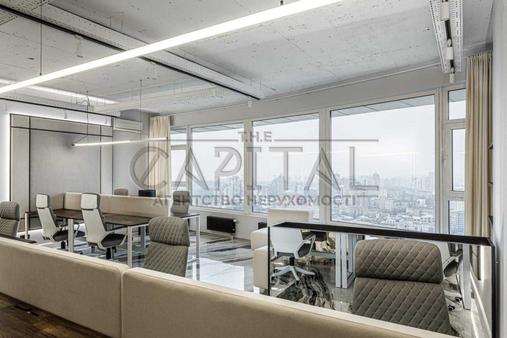 Видовий офіс повністю укомплектований меблями та технікою. Панорамні вікна відкривають вид на Печерськ та центр столиці.
