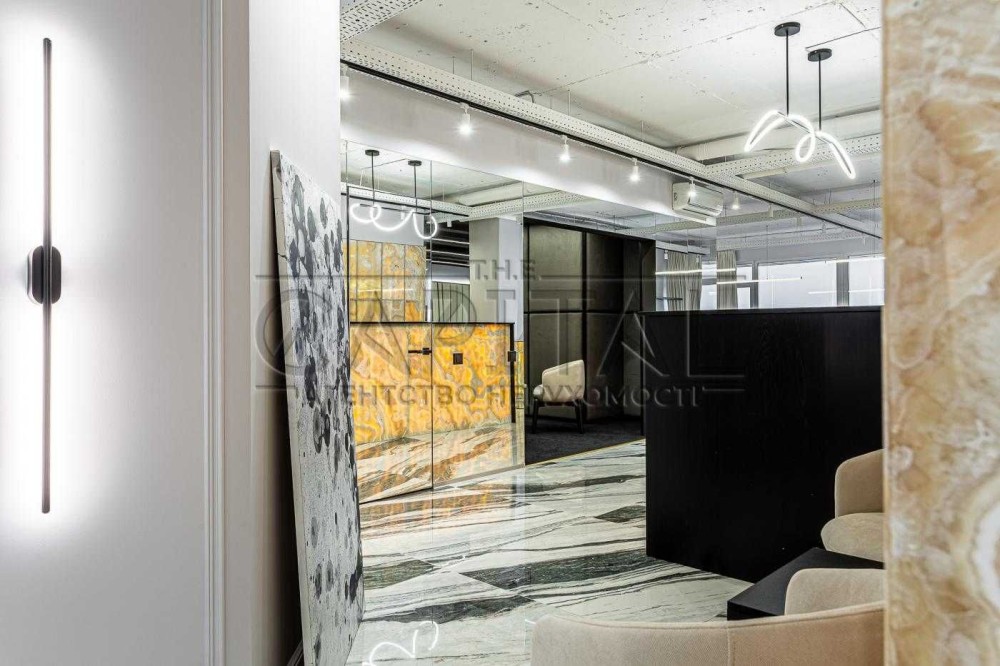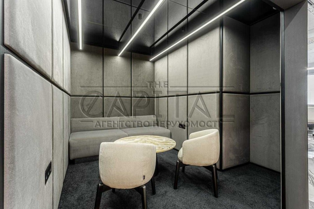 Стан приміщення: новий сучасний дизайнерський ремонт із застосуванням нових технологій акустичного дизайну – офіс повністю знешумлений. Укомплектований сучасними якісними меблями. На кухні є вся необхідна техніка: холодильник, мікрохвильова піч, чайник. Бойлер. Система кондиціювання, клімат-контроль.