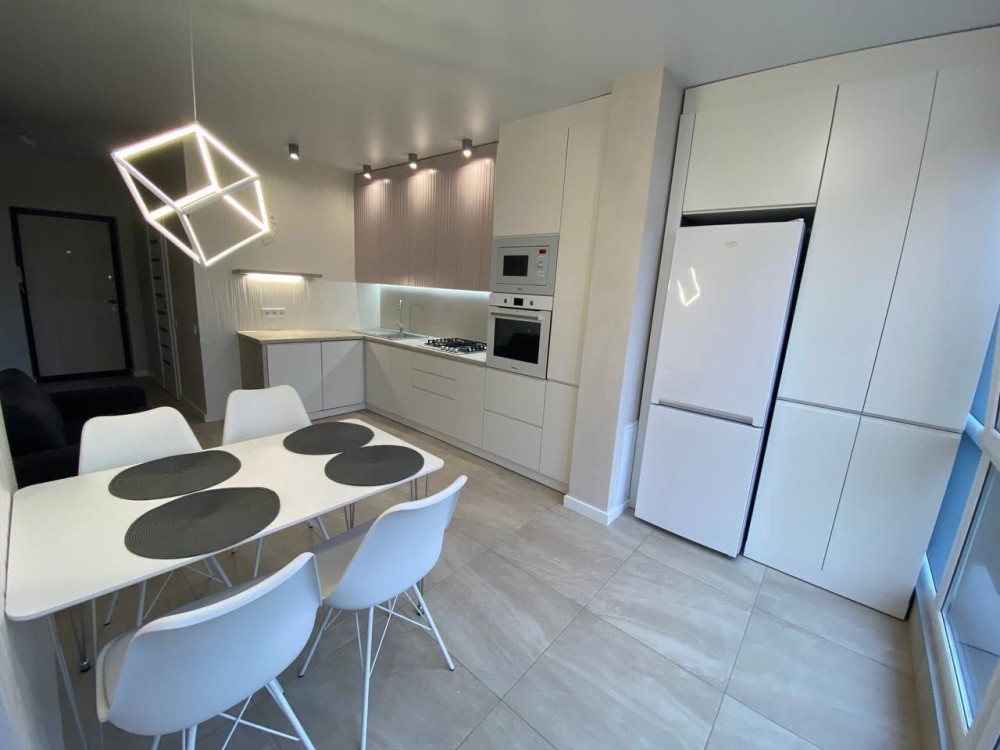 Дизайнерський ремонт виконаний у світлих сучасних тонах, з якісними матеріалами та виваженими деталями інтер’єру.