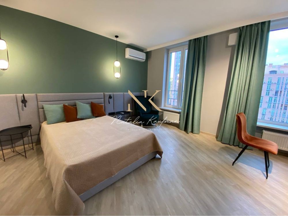 Студія 32м2, стильна та простора! 7 поверх «Змійка») Багато місця для речей та є робоча зона, smart TV 48’’, посудомийна машина та ін. Безперебійний інтернет!!!