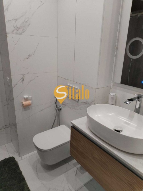 - Простора кухня-вітальня обладнана вбудованою технікою преміум-класу: холодильник Samsung, посудомийна машина, індукційна плита, духова шафа, мікрохвильова піч, а також система осмосу для чистої питної води. Вітальня зі стильним диваном та сучасним телевізором стане ідеальним місцем для відпочинку. Для вашої зручності буде додатково встановлено кондиціонер.