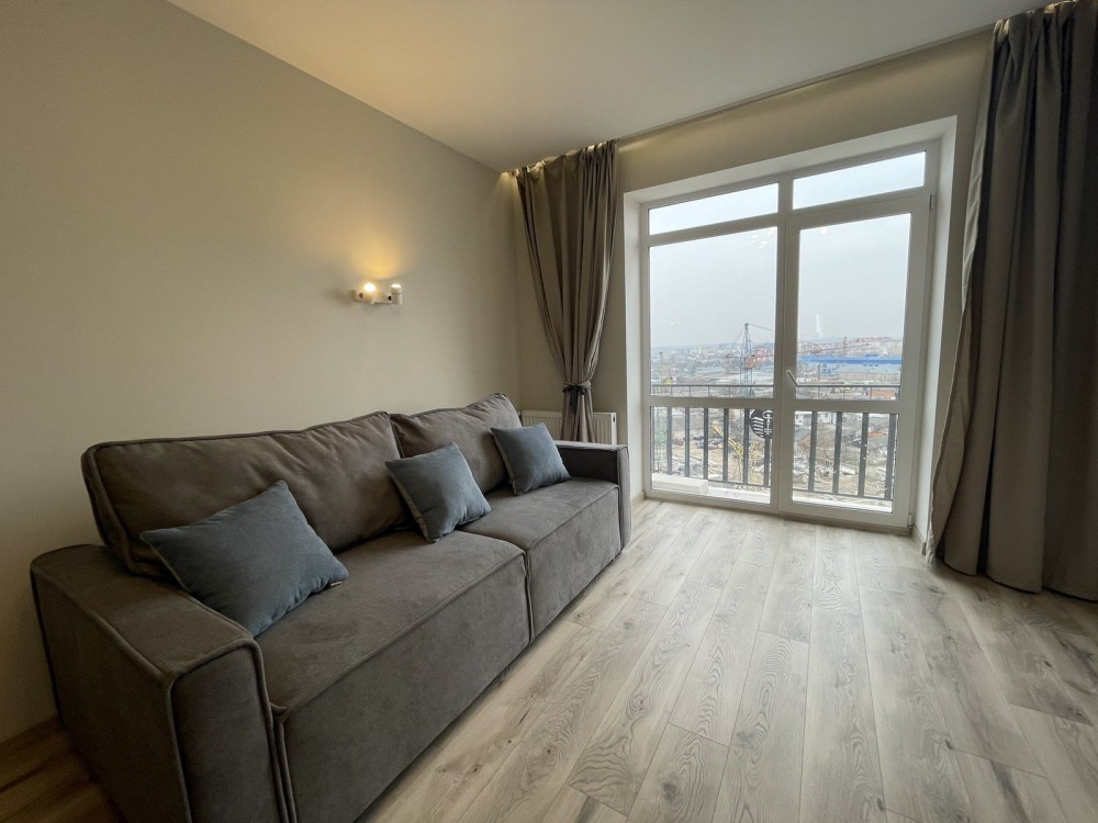 Квартира з функціональним плануванням: окрема спальня, простора вітальня, велика кухня, санвузол. Виконано якісний сучасний ремонт, приємна кольорова гама, багато природного світла.