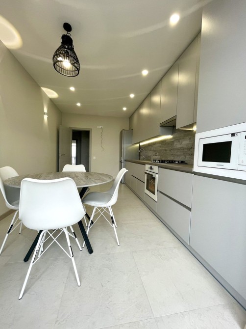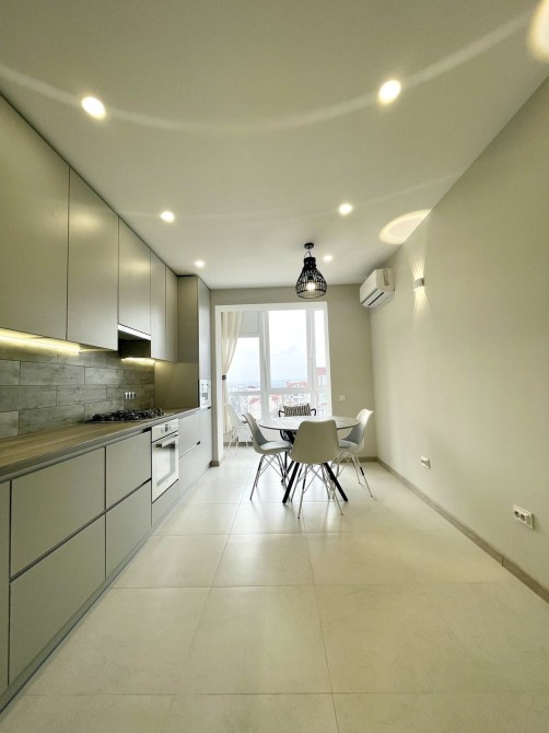 Повністю укомплектована меблями та всією необхідною побутовою технікою: холодильник, пральна машина, плита, духова шафа, витяжка, телевізор. Для максимального комфорту встановлено два кондиціонери.