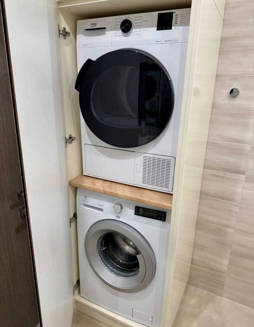 Із кухні-вітальні вихід на два окремі балкони, Також є окрема сушильна машина.