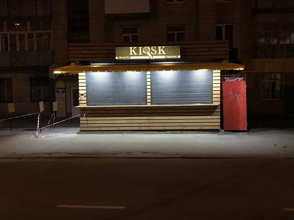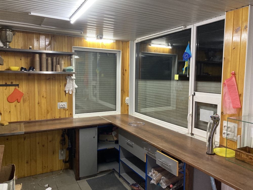 Майданчик зі столиками поруч, додаткове вуличне освітлення. Утеплений, велика кількість розеток, промислові витяжки, автономне водопостачання та відведення, захисні ролети, пультова охорона, новий ремонт, меблі.