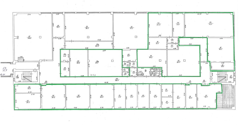 Пропонуються до оренди приміщення 2-го поверху площею 693,90 кв. м. Будівля знаходяться в центральній частині міста, розвинута інфраструктура, високі пішохідний та автомобільний потоки. Можна використати для розміщення офісу.