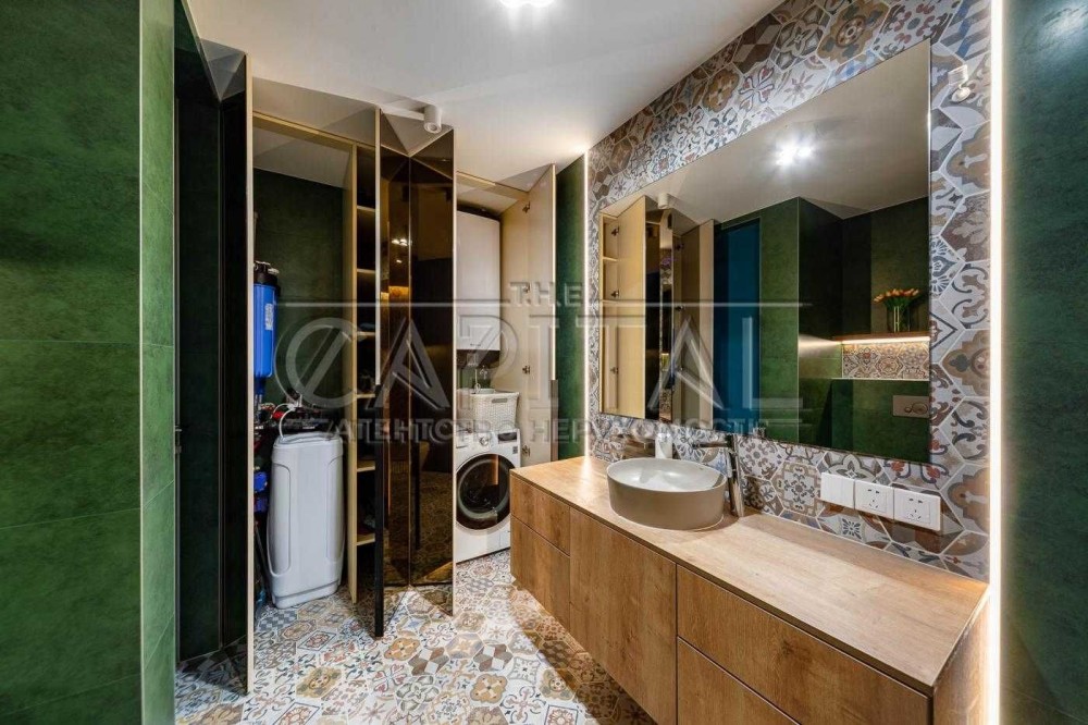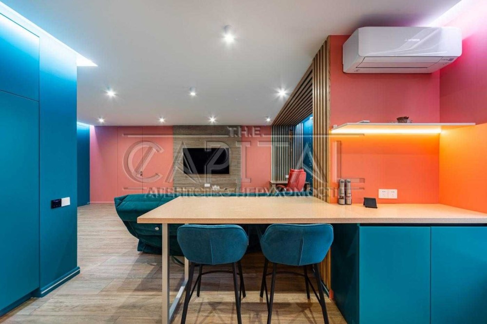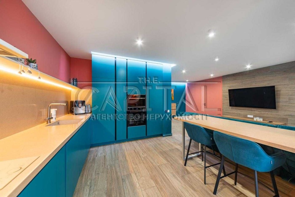 - Вся техніка вбудована, меблі виготовлені на замовлення (push-up механізми)
