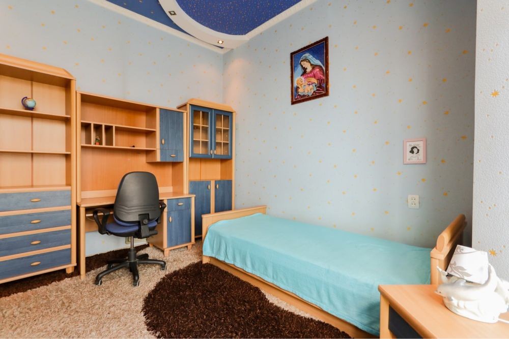 Затишна квартира має зручне планування: 2 окремі мебльовані спальні кімнати з міжкімнатними дверима та якісними ліжками, окремі гардеробна та комірка, кухня площею 20 м2 з вбудованою технікою та меблями, роздільний санвузол обладнаний ванною та якісною сантехнікою.