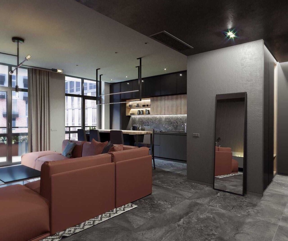 Квартира з якісним сучасним ремонтом, виконаним у стильних тонах.