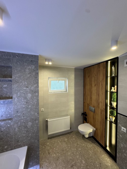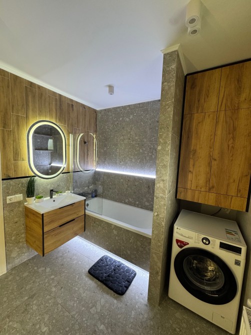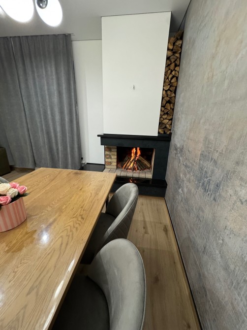 Встановлено всю необхідну техніку й меблі для комфортного та тривалого проживання. Простора вітальня, натуральний відкритий камін який передає неймовірну затишну єнергію тепло та атмосферу вогню. Тепла підлога (єлектрична та водяна). Система "Розумний дім".(отоплення керуется зі смартфону що дасть змогу вибрати комфортну температуру завчасно коли ви повертаетесь з подорожі.Є відео нагляд з 2 ІР камерами та сучастна охоронна система Ajax Systems. сантехніка Crone.Стільниця з натурального рідкого каменю.