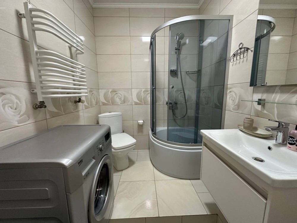 - Всі необхідні меблі та техніка: двоконтурний котел, газова варильна поверхня, духова шафа, холодильник, мікрохвильова піч, пральна машина, телевізор, порохотяг