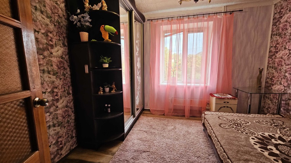 Кімната у відмінному житловому стані, після косметичного ремонту. В наявності - ліжко та шафа-купе. ПРОЖИВАННЯ З ВЛАСНИЦЕЮ, яка живе в іншій кімнаті. Усі є необхідні меблі та побутова техніка- холодильник( окремий), пральна машина.