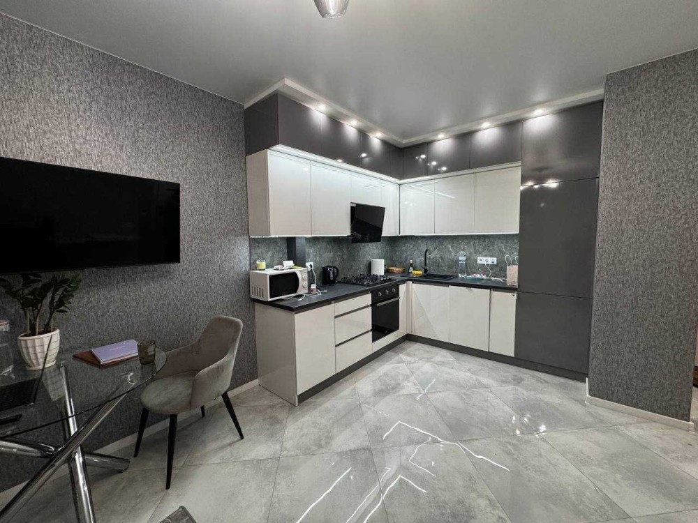 Простора кухня-вітальня, окрема спальня, ванна кімната та лоджія з мальовничим краєвидом