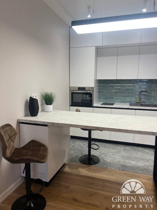 Оренда 2 кімнатної квартири-ЄвродвушкиВ ЖК НОВА АНГЛІЯ-будинок МанчестерПо вулиці Максимовича 26гЗагальна площа квартири 51м217 поверх з 19Квартира буде до укомплектована телевізором та тумбою під нього,шторами,прикраватними тумбами та барними стільцямиВікна виходять у сторону зони з фонтанами Квартира з дизайнерським ремонтом, великими вікнами, світлою кухнею-студією, окремою спальнею та гардеробною кімнатою. В квартирі зроблена додаткова звукоізоляція. Оздоблення оселі – з використанням якісних матеріалів провідних виробників. Кухня-вітальня обладнана якісними меблями та технікою (вбудований холодильник, духова шафа з функцією СВЧ, та посудомийна машина). Зручний диван з ортопедичним матросом забезпечує додаткове двоспальне місце. Окрема спальня з гардеробною кімнатою зі зручною відкритою системою зберігання та великим дзеркалом. Ванна кімната з сучасним душем walk-in та міцним гартованим склом, з місткою системою зберігання. Обладнана теплою підлогою, бойлером на 80л., та прально-сушильною машиною. Встановлена система фільтрації води (на всю квартиру), система захисту від протікання. Якісна мідна проводка з системою захисту від перепадів напруги. Два безшумні інверторні енергоефективні кондиціонери. Безшовна підлога, двері прихованого монтажу.Комплекс має закриту, безпечну (охорона 24/7) та гарно облаштовану територію. Багато продуктових та побутових магазинів, кав’ярень, ресторанів, салонів краси, фітнес клуб, аптека, спортивні та ігрові майданчики (теніс, футбол, волейбол), зона вигулу тварин. На території знаходиться приватний дитячий садочок та школа. Під будинком знаходиться зручний підземний паркінг (з ліфтом у паркінг), перед входом великий дитячий майданчик та зона фонтанів. До центру міста 15 хв на машині, 25 хв громадським транспортом, 14 хв пішки до метро «Васильківська».