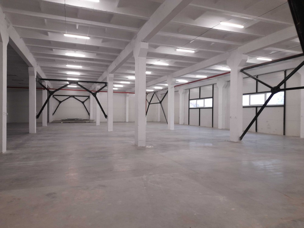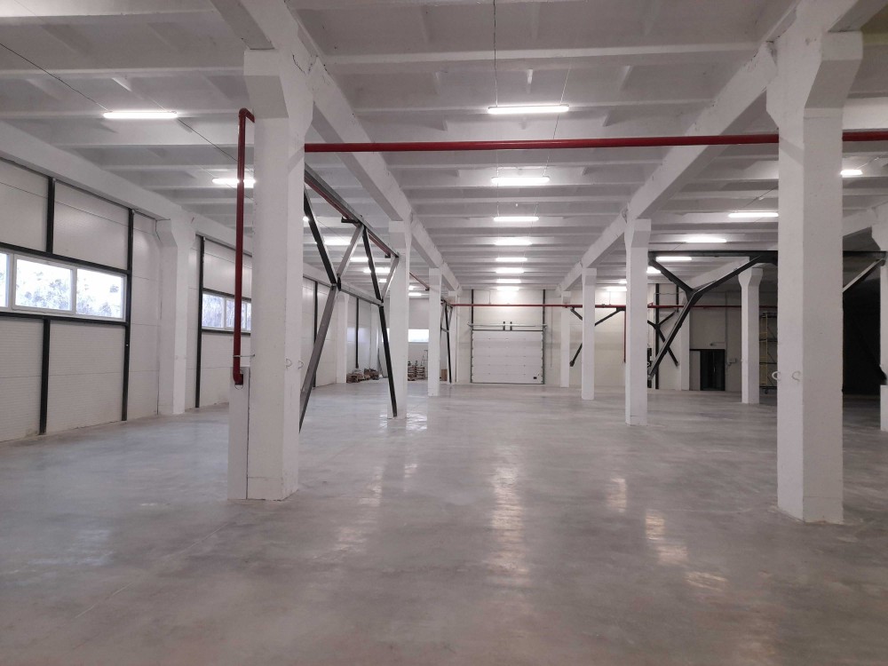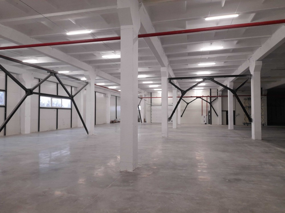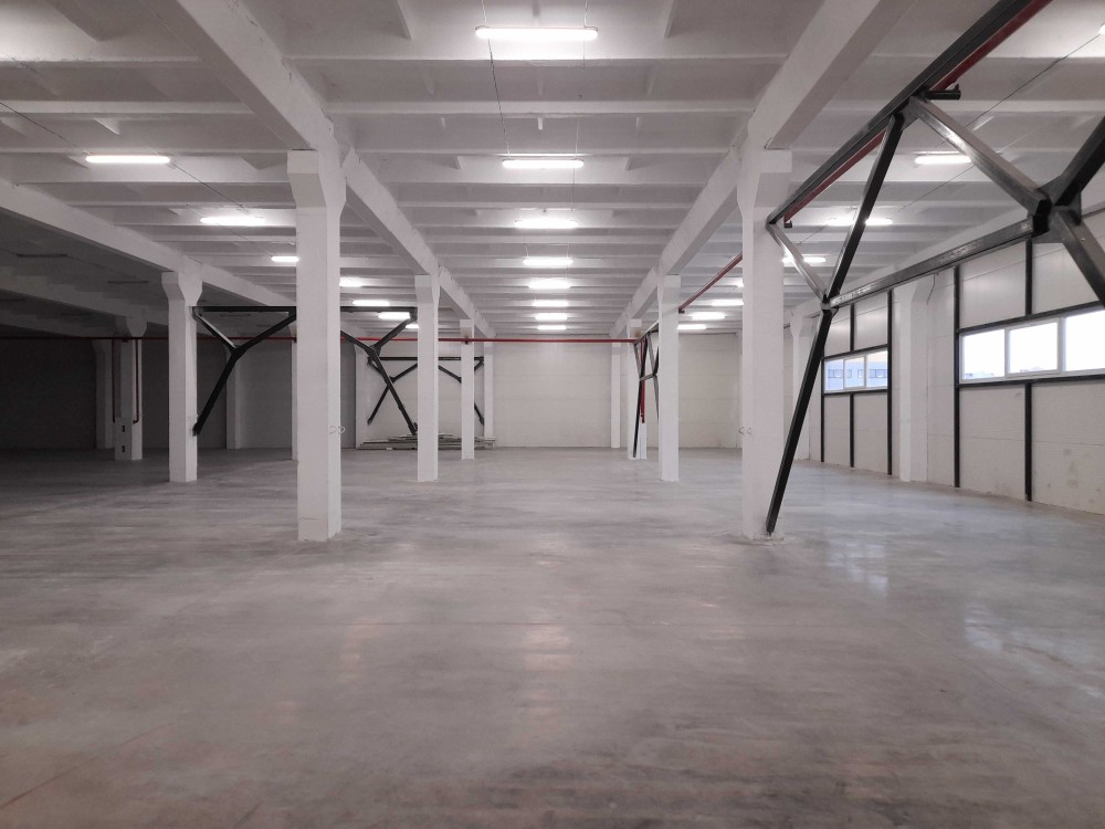 Висота стель виробничого корпусу 1-й поверх –6 метрів, Корисне навантаження на підлогу - 5т/м 2. Підлога - монолітна з знепилюючим зміцнюючим покриттям. Крок колон 6*9 м. Частину приміщень можна обладнати стелажами висотного зберігання за замовленою комплектацією.