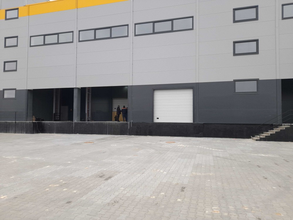 Зручна рампа з навісом, розташована по всій довжині фасаду та індивідуальні ворота кожного відсіку забезпечують можливість завантаження/розвантаження кількох машин одночасно. Майданчик перед рампою дозволяє виконувати маневрові роботи та подачу довгомірного транспорту під завантаження.