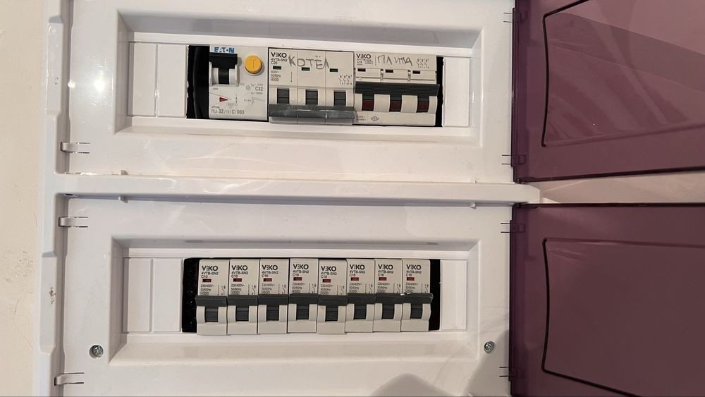 вимикачами, електрощитовою, інтернетом, сигналізацією; стіни - начисто