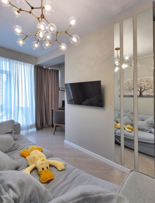 В квартире выполнен новый ремонт из качественных европейских материалов. Полностью меблирована и укомплектована всей необходимой техникой — готова к проживанию.