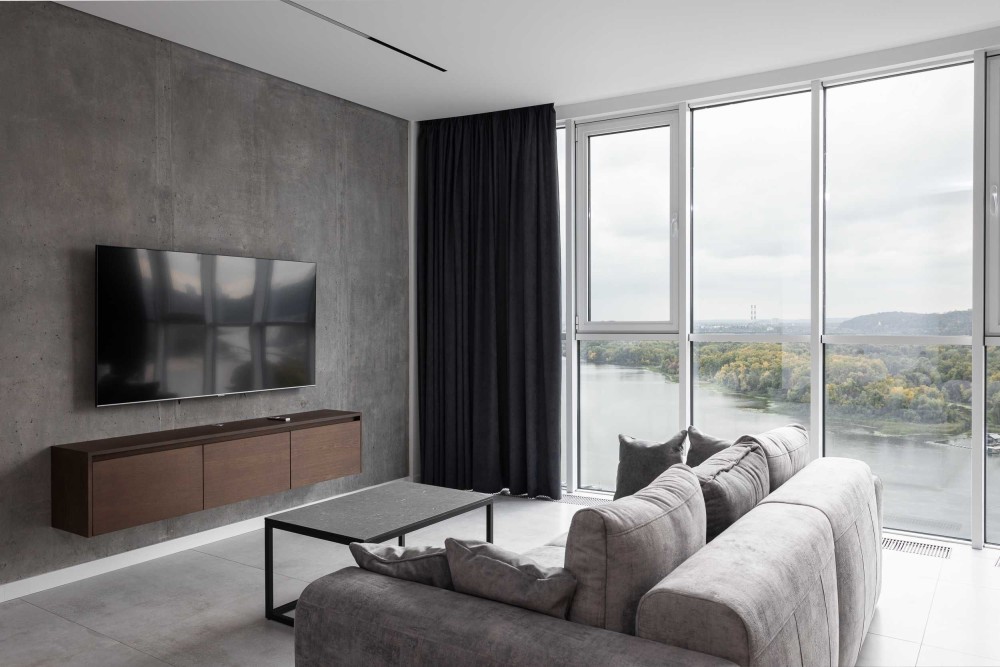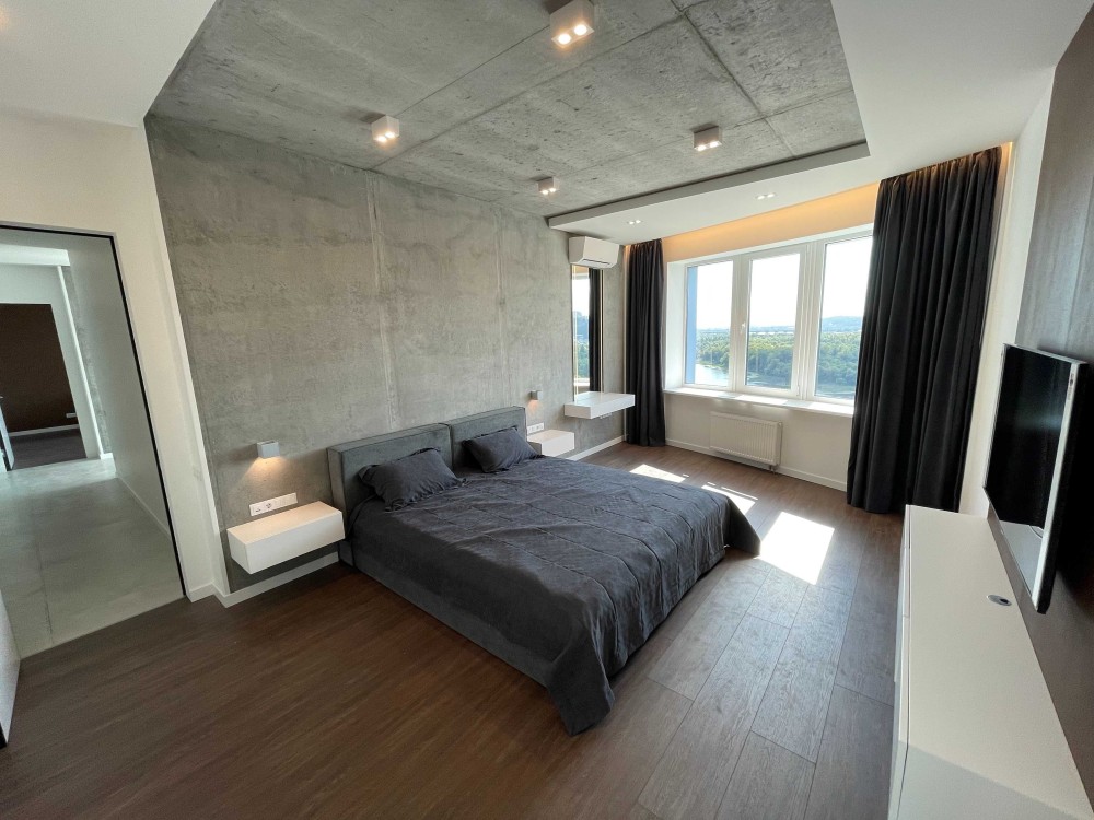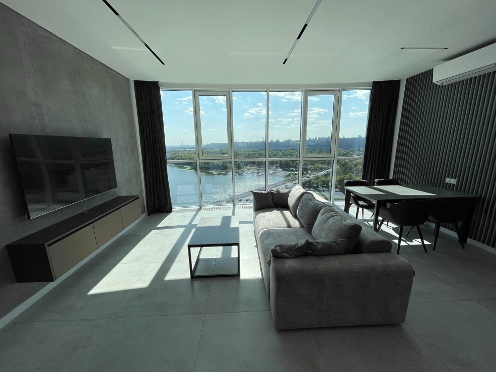 Квартира розташована на 18-му поверсі, відкривається панорамний краєвид на Дніпро, Печерську Лавру, Гідропарк, Венеціанський острів та центр Києва.