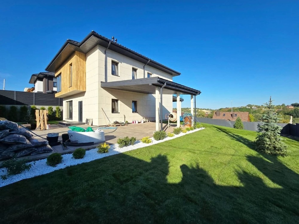 Будинок 2 поверховий 230 м2. 2 тераси нижня , верхня. Навіс на 2 авто. Поруч озера, ліс.