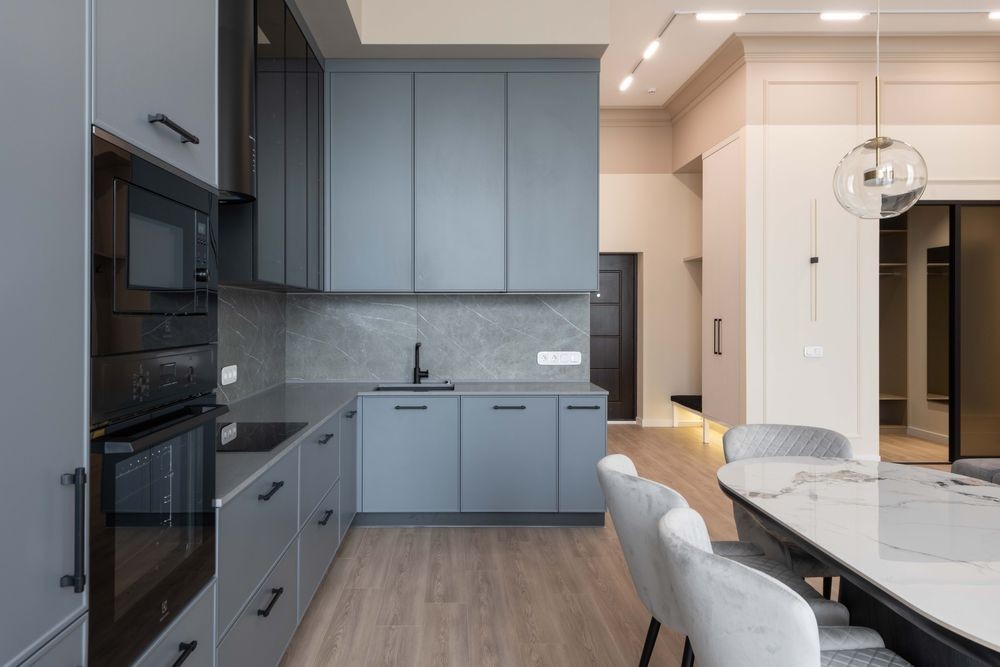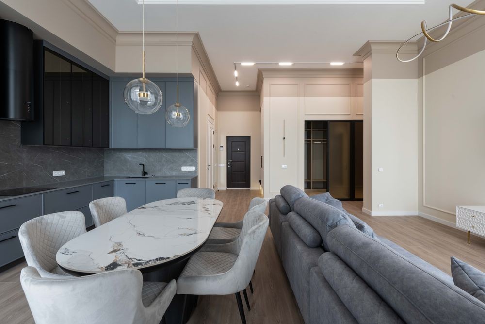 Кухня-студія з обідньою зоною та зоною вітальні