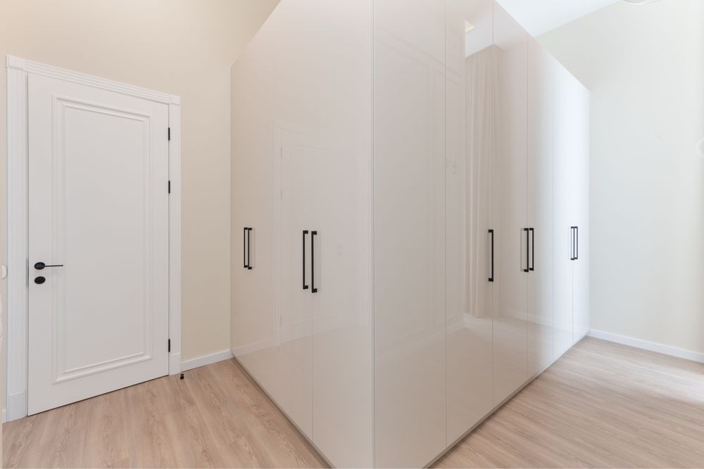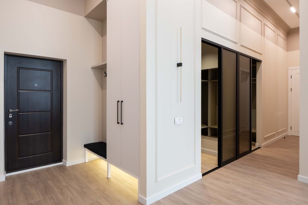 Велика прихожа з вбудованими гардеробними шафами