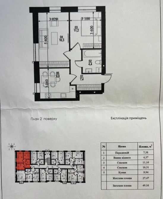 • Загальна площа 49.16 м2