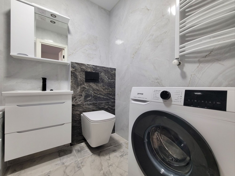 Квартира здається вперше, гарний свіжий ремонт, з меблями та побутовою технікою (пральна, посудомийна машини, холодильник, морозилка, духовка, газова поверхня), індивідуальне опалення, теплі підлоги під плиткою.