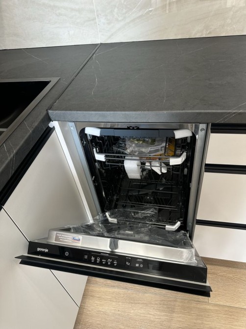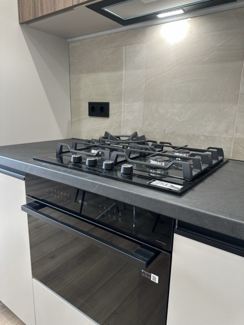 Кухня-вітальня: обідня зона, диван, посудомийна машина,газова поверхня, духова шафа з микрохвильовкою, холодильник, вся техніка вбудована.