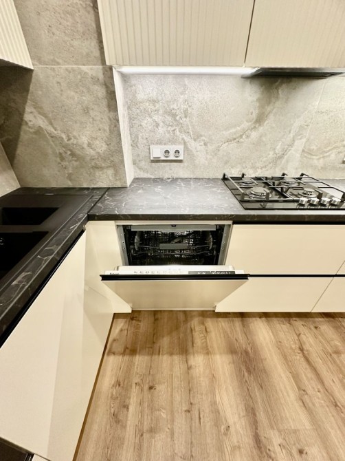 Вбудована кухня повністю укомплектована побутовою технікою: варильна поверхня, витяжка, духова шафа, мікрохвильова піч, посудомийна машина, холодильник. Також є пральна та сушильна машини. Ремонт робили не для продажу, продаж у звʼязку з виїздом за кордон.