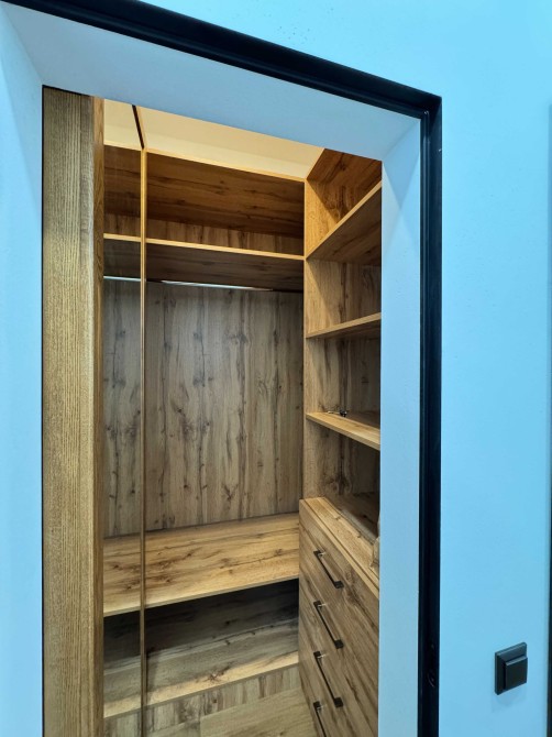 Дуже зручна та гибока робоча зона на кухні. Фасади кухні та всіх шаф виготовлені з дерева.