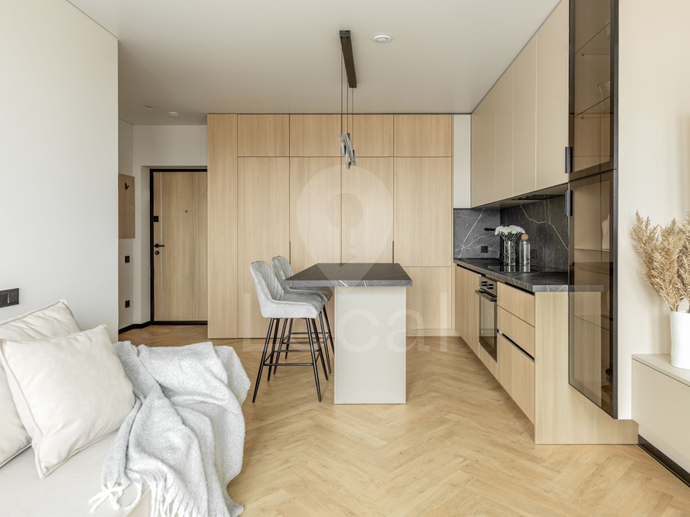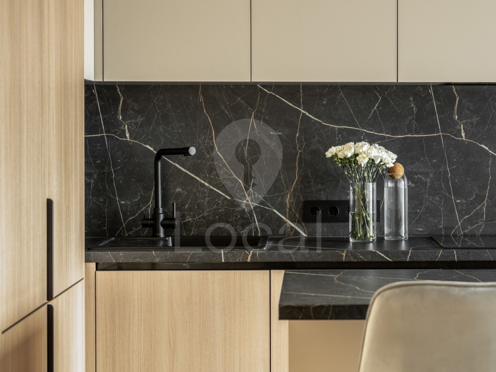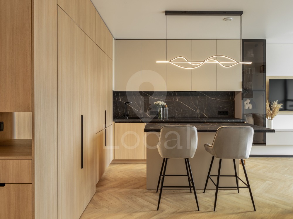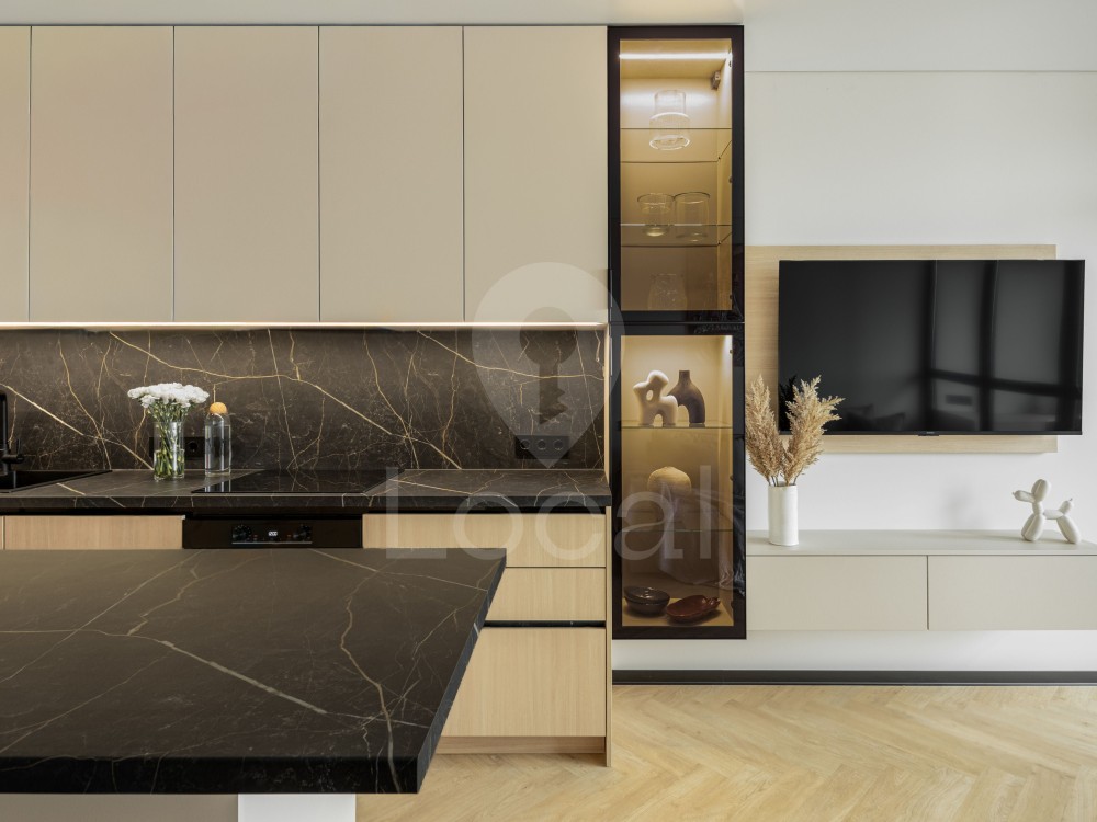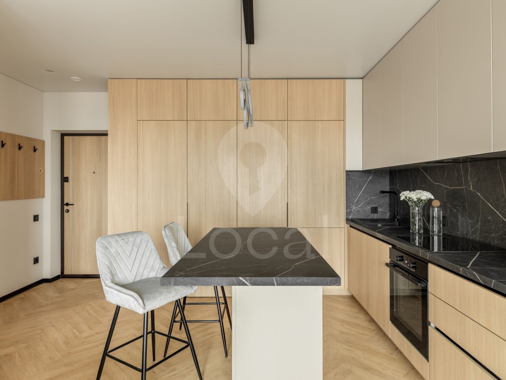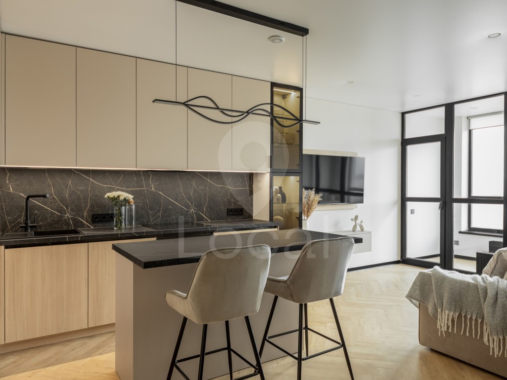 Квартира повністю укомплектована меблями та якісною вбудованою технікою від провідних виробників: