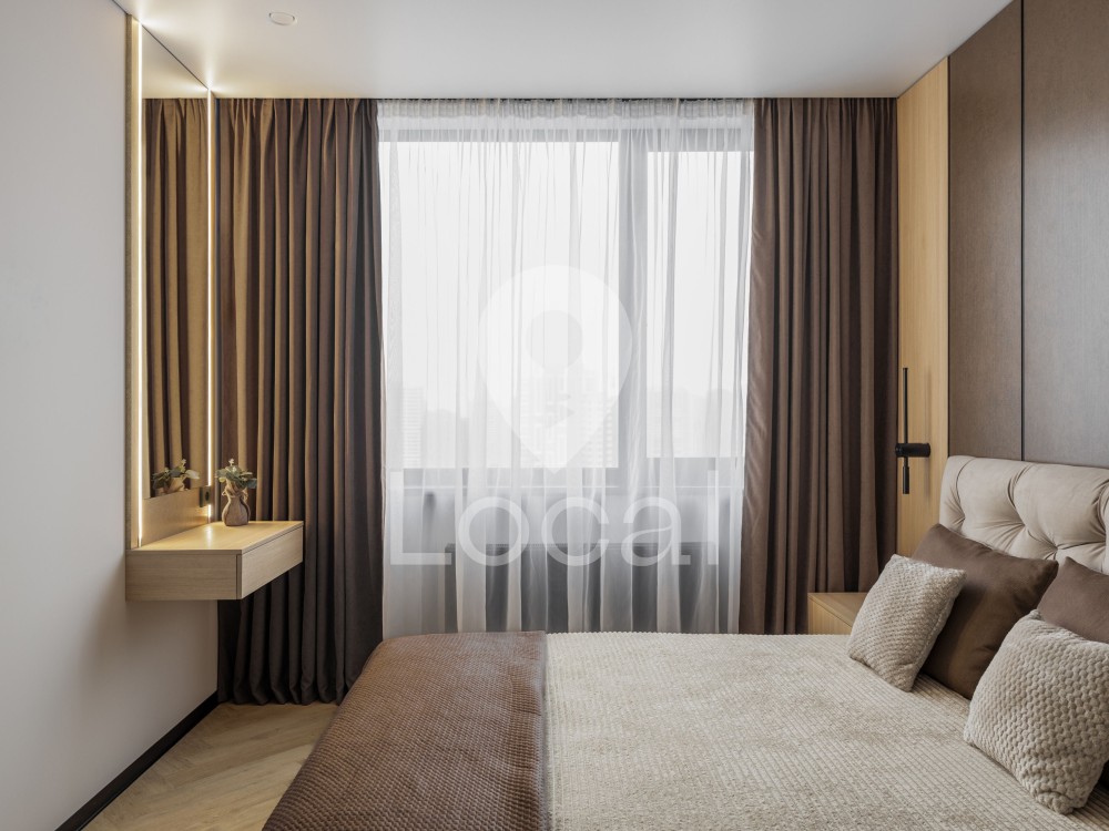 • Дизайн: сучасний дизайнерський ремонт, виконаний з якісних матеріалів. Стіни під фарбування, декоративні стінові панелі. Натяжна стеля з тіньовим профілем.