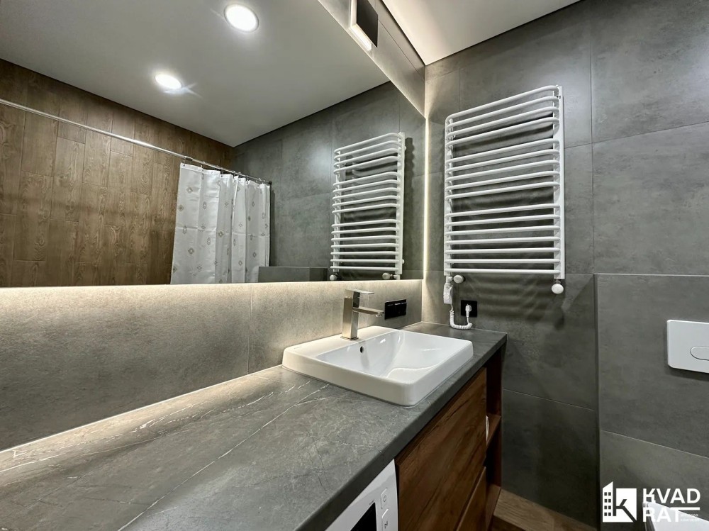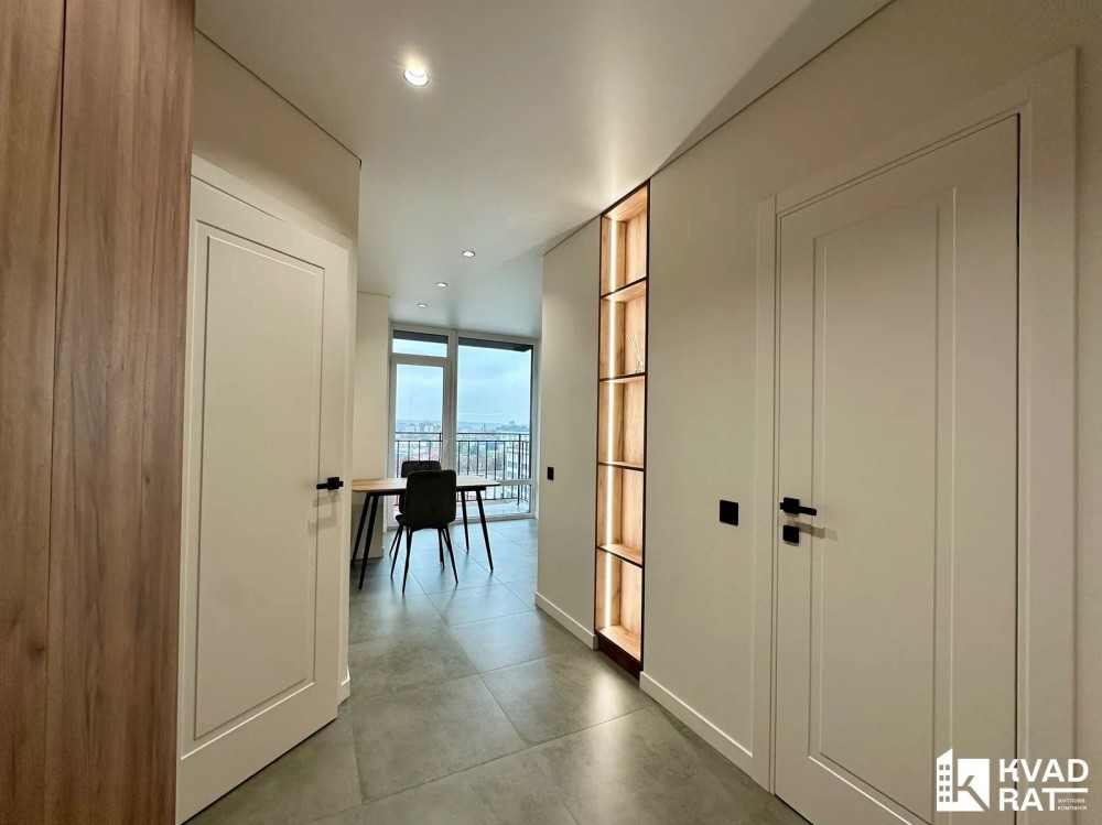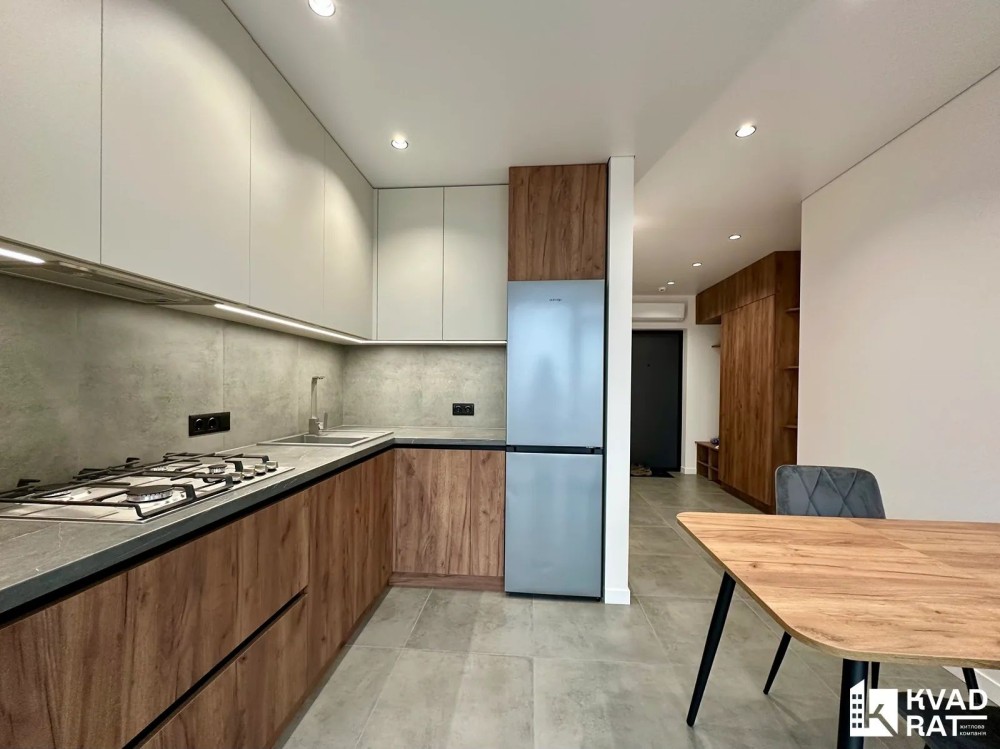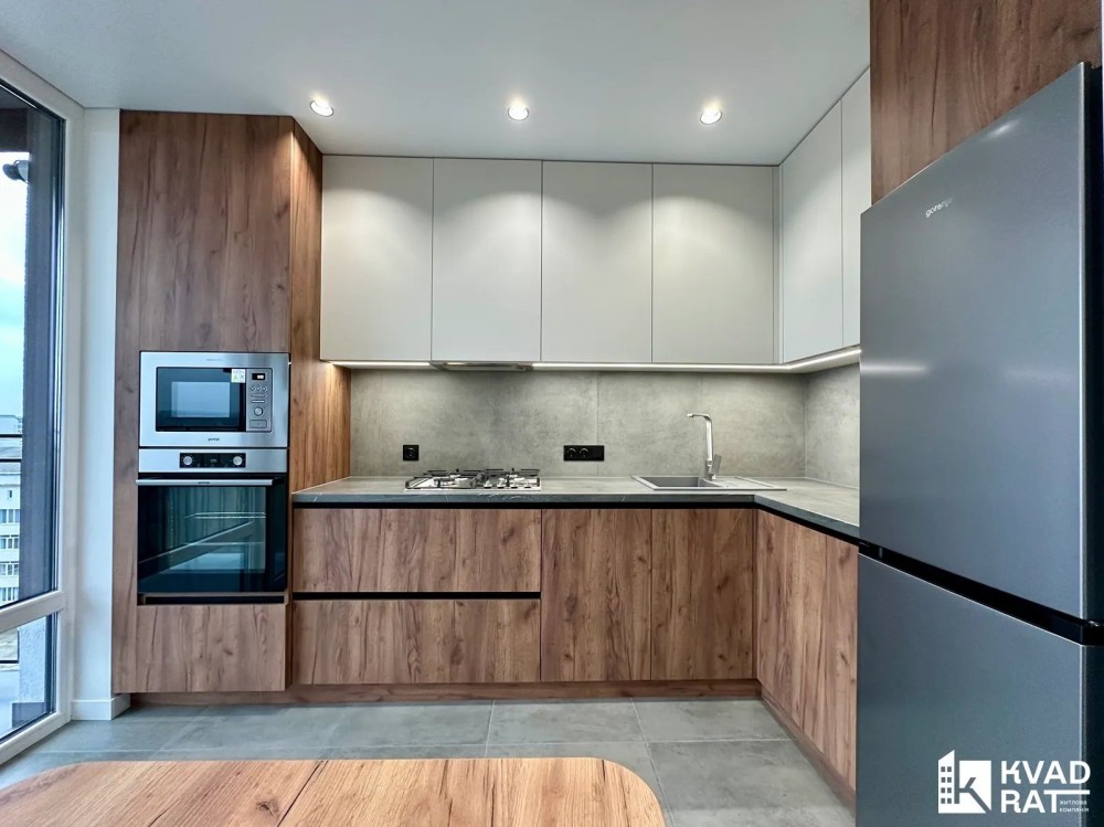 Оренда стильної 1 к кв з кухнею студією в новому будинку ЖК "Файна Таун" в Шевченківському районі, вул. Салютна, 2 Квартира 43 м2 , розташована на четвертому поверсі та складається з передпокою, спальні, великої кухні -студії та санвузла. Вікна квартири виходять в двір. Облаштована всіма необхідними меблями з екологічно чистої деревини та оснащена побутовою технікою: телевізор Samsung Smart 43, кондиціонери в кухні та кімнаті, плита індукційна, вбудований холодильник, духова шафа з функцією мікрохвильової печі, пральна машина з сушаркою. В кухні та ванній кімнаті тепла підлога, високошвидкісний інтернет. ЖК "Файна Таун" це: закрита територія з входом по картці, цілодобова охорона, відеоспостереження, паркінг, підземні контейнери для сміття, зарядні станції для електромобілів та лавки з інтегрованими батареями для підзарядки девайсів, розумне освітлення, яке підлаштовується під час доби та ще багато чого для того, щоб жити з комфортом й ні в чому себе не обмежувати) розповім при перегляді. Зручне транспортне сполучення та розвинута інфраструктура: магазини,спортивні та пішохідні зони ,зона барбекю, ресторани та кафе. Квартира, в якій поєднані комфорт та затишок, шукає своїх порядних орендарів молоду пару або одну людину без дітей та тварин. Перша оренда, квартира вільна.