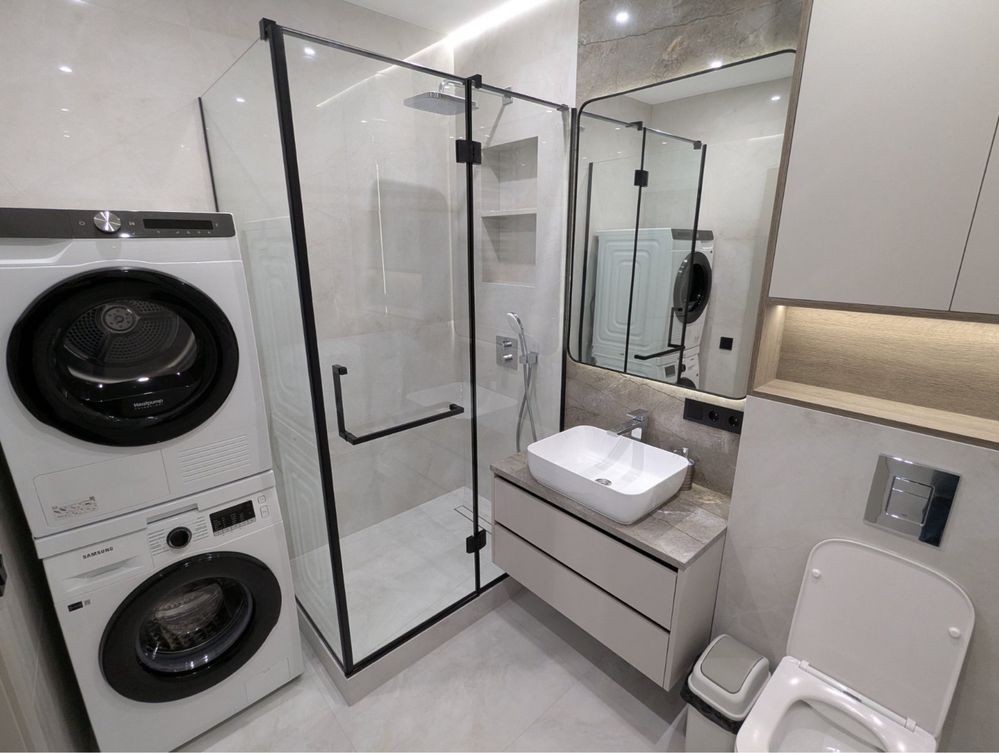 - Пральня та сушильна машина у ванній
