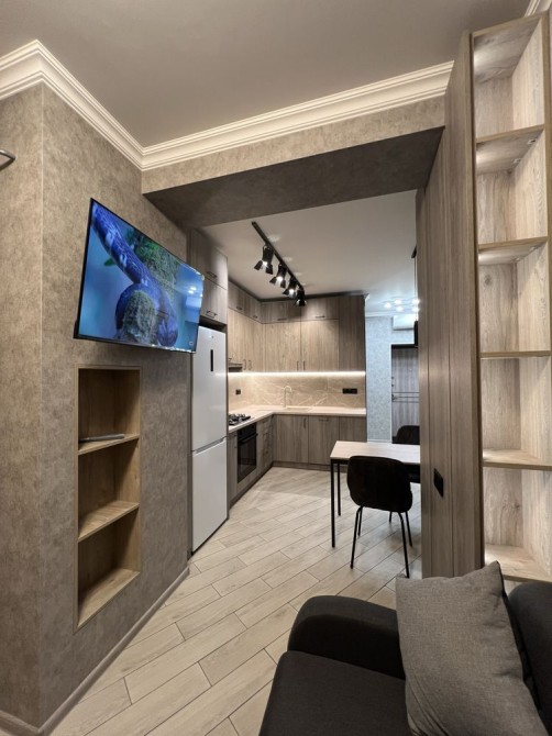 Оренда стильної 1 к кв з кухнею студією в новому будинку ЖК "Файна Таун" в Шевченківському районі, вул. Салютна, 2 Квартира 43 м2 , розташована на четвертому поверсі та складається з передпокою, спальні, великої кухні -студії та санвузла. Вікна квартири виходять в двір. Облаштована всіма необхідними меблями з екологічно чистої деревини та оснащена побутовою технікою: телевізор Samsung Smart 43, кондиціонери в кухні та кімнаті, плита індукційна, вбудований холодильник, духова шафа з функцією мікрохвильової печі, пральна машина з сушаркою. В кухні та ванній кімнаті тепла підлога, високошвидкісний інтернет. ЖК "Файна Таун" це: закрита територія з входом по картці, цілодобова охорона, відеоспостереження, паркінг, підземні контейнери для сміття, зарядні станції для електромобілів та лавки з інтегрованими батареями для підзарядки девайсів, розумне освітлення, яке підлаштовується під час доби та ще багато чого для того, щоб жити з комфортом й ні в чому себе не обмежувати) розповім при перегляді. Зручне транспортне сполучення та розвинута інфраструктура: магазини,спортивні та пішохідні зони ,зона барбекю, ресторани та кафе. Квартира, в якій поєднані комфорт та затишок, шукає своїх порядних орендарів молоду пару або одну людину без дітей та тварин. Перша оренда, квартира вільна.