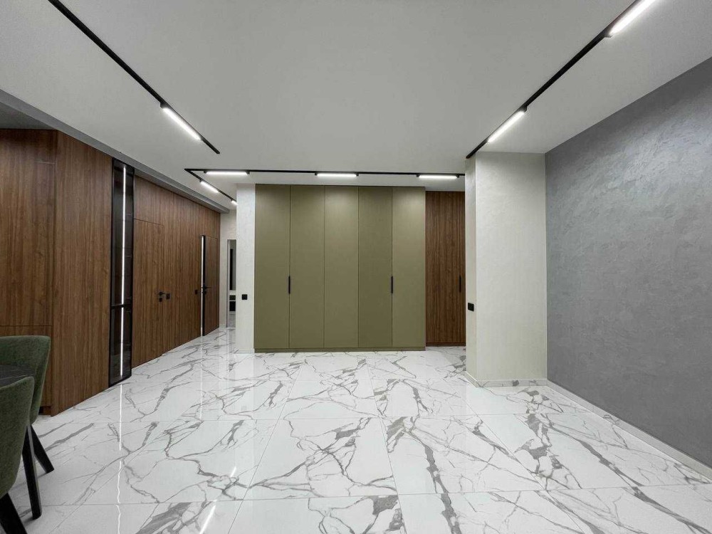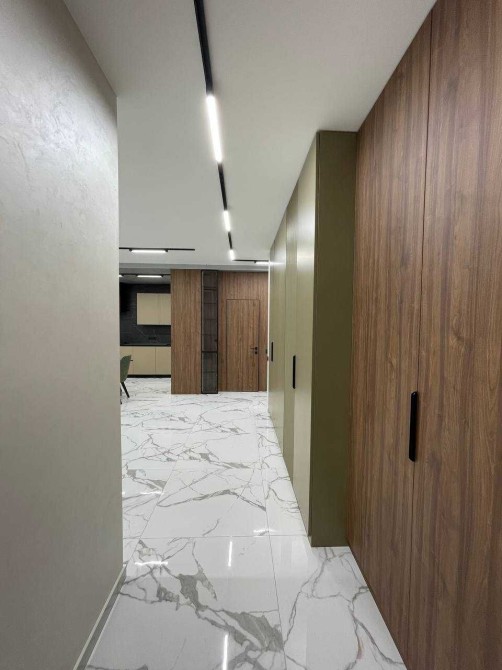 В квартирі двоспальне ліжко з підйомним механізмом, вмонтована кухня, посудомийка, вбудований холодильник, духовка-мікрохвильовка і газо-індукційна плита, інверторні кондиціонери, підігрів підлоги водяний