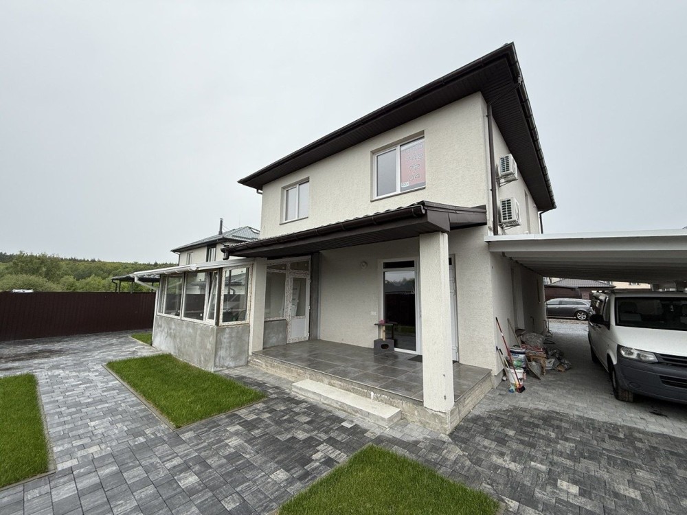 Броварской р.н.с.Рожны.Дом 2020г.Площадь жилая 210м2.Общая 300.Стены керамоблок.залиты межэтажные монолитные участок 36сот.Электричество15кВт.Интернет.Рядом лес.Маркет.базар.автобусная остановка.До города 20км