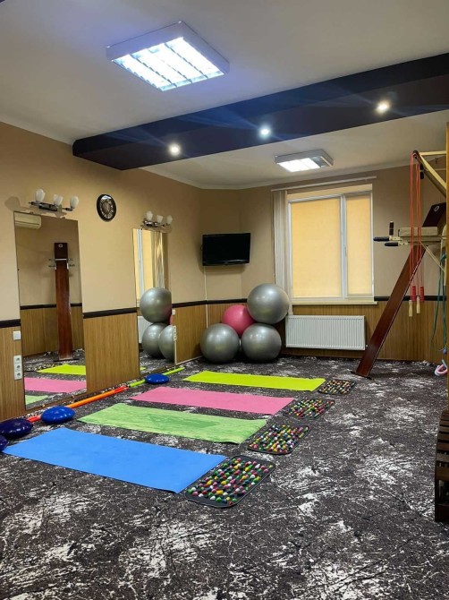 барная стойка, мебель, кожаные кресла и диваны, столы, телевизор, кухонная зона, ресепшн, всё необходимое профессиональное стационарное оборудование, парикмахерские и педикюрные кресла, массажные кровати и массажные кресла, спортивный инвентарь, бойлерная, стиральная машинка автомат, 2х контурный котел, кондиционеры.