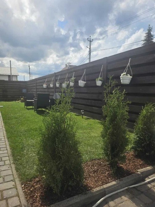 Планування: коридор – 3,5м2, передпокій – 10м2, гостьовий санвузол – 3,5м2, гостьова кімната/кабінет – 9,5м2, кухня-вітальня – 27м2 з виходом на заднє подвір’я; 2й поверх: коридор – 5м2, санвузол – 6м2, спальня – 17м2 з виходом на балкон – 2м2, дитяча кімната 1 – 13м2, дитяча кімната 1 – 12м2.