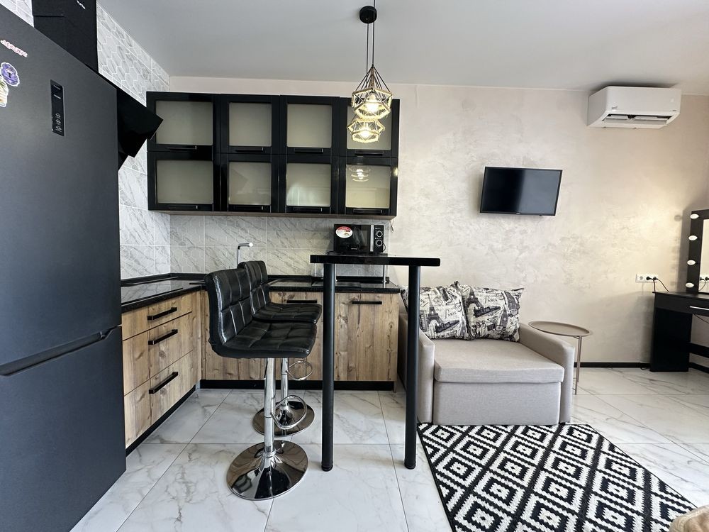 Сдаётся уютная квартира студийного типа в современном комплексе ЖК “Аквамарин” на 6-м этаже , всего в 300 метрах от пляжа.