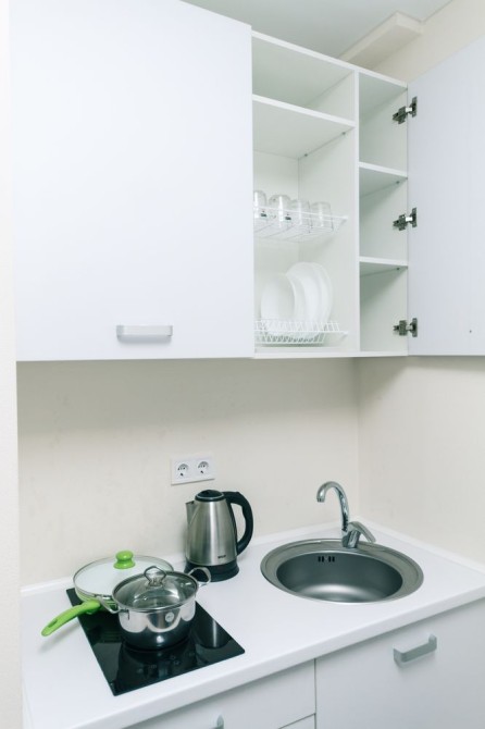 - Нова техніка: плоский ТБ, холодильник, кондиціонер, пральна машинка-автомат, мікрохвильова піч, ел. чайник, праска;